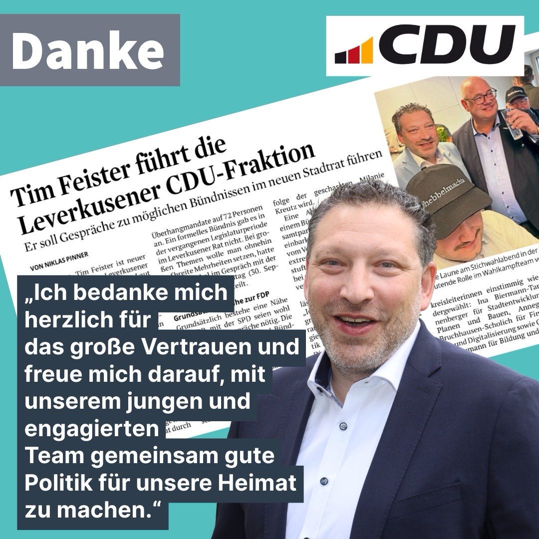 Mit dem einstimmigen Vertrauensbeweis meiner Fraktion und der starken Position im Stadtrat haben wir eine echte Chance, nicht nur Ideen zu diskutieren, sondern umzusetzen. Ich nehme den Dank und das Vertrauen der Bürgerinnen und Bürger gerne an – und ich trete an mit dem festen Willen, Leverkusen gemeinsam anpackend und zukunftsorientiert zu gestalten.