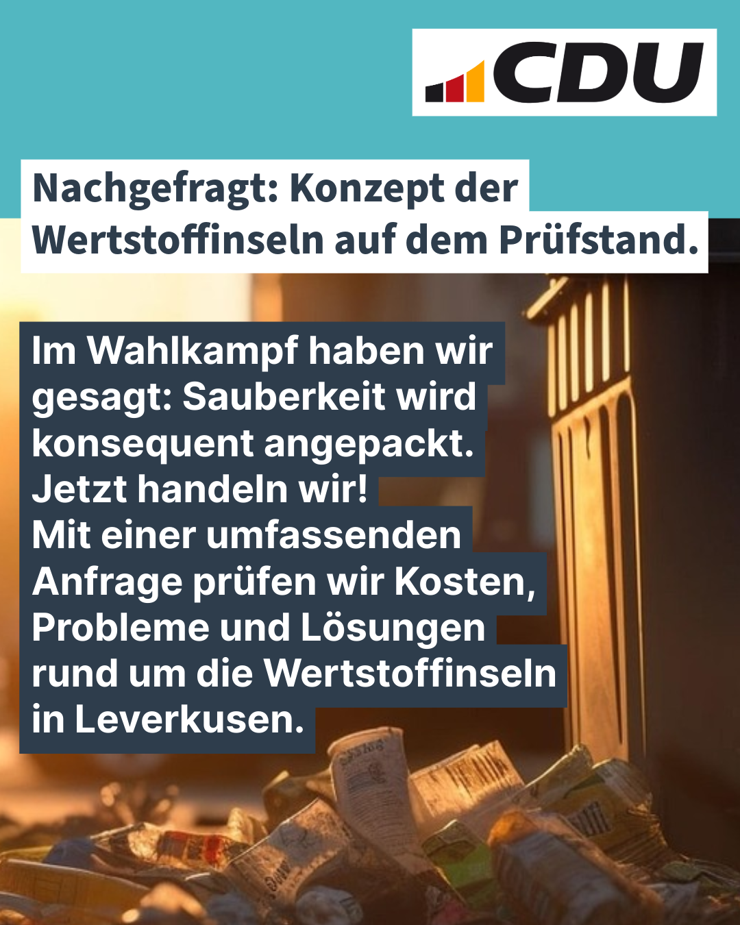 Sauberkeit und Ordnung gehören zu den zentralen Schwerpunkten der CDU Leverkusen. Bereits im Wahlkampf haben wir deutlich gemacht: Eine gepflegte Stadt ist kein Luxus, sondern ein Anspruch der Bürgerinnen und Bürger.
